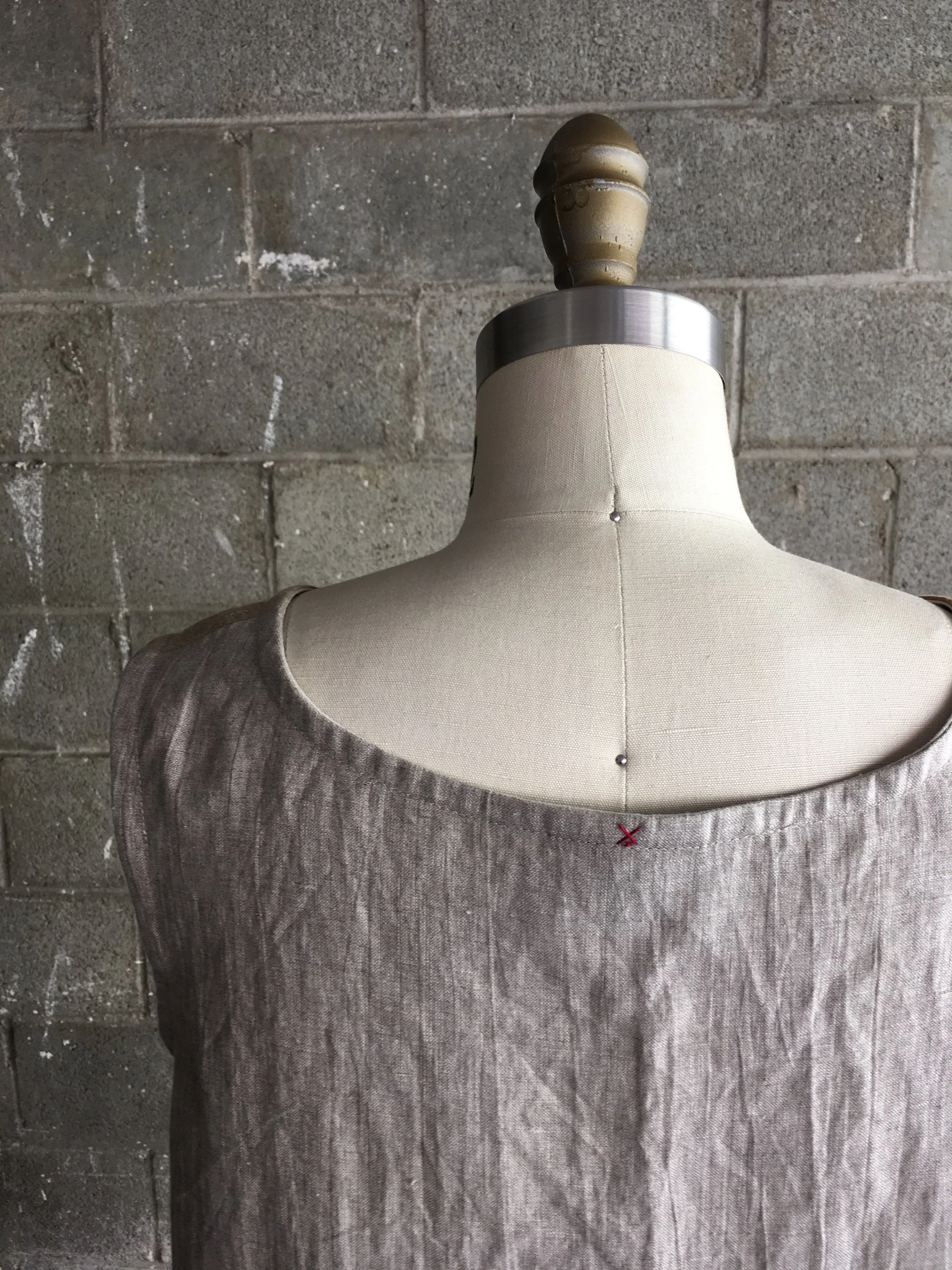 Rust-dyed organic linen. Fine finished seams. Linen-bound arms and neckline. Hand-stitched detail. Raw hem. One of a kind. Always.